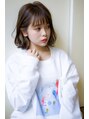 ラウンドシルエットでまとまり重視で表面にニュアンスレイヤーを入れて動きをプラス。くせ毛の方はストレートをかけて、毛先だけワンカールパーマを!カラーはオリジナルのプラチナベージュで柔らかさを出しました。イヤリングカラーでメリハリを☆