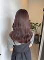 ピンクカラーに、ベージュカラーを入れることで柔らかさを出しています。色落ちも可愛いく透明感もたっぷりです。また、切りっぱなしボブはお手入れしやすいようにこだわってカットしました