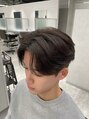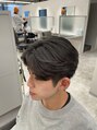 前髪は長めで重さを残しつつ、自然に横へ流れる毛流れを作ったナチュラルなセンターパートスタイル。サイドと襟足はすっきり収めて、トップに程よい丸みと動きを出したバランスのいいシルエットになっています!