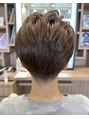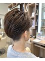 ハンサムショート!ツーブロックにあまめ刈り上げ!ベリーショートの中に丸のみのあるカットで柔らかさも。カラーは、ナチュラルブラウン!