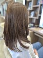 ベージュカラー。イルミナカラーで柔らかさと透明感を。カットは、少しレイヤーをいれておろしていても巻いても動きがでるように!