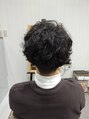 マッシュベースにスパイラルパーマをプラス。トップからしっかり動きを出し、重さを残しつつも野暮ったく見えないバランスに。程よい束感と立体感で、スタイリングはワックスを揉み込むだけ。直毛・軟毛の方でも扱いやすく、朝のセットが楽になるスタイル