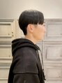 パツっとしたライン感を残したセンターパートはサラッとオイルをつけてあげるだけで雰囲気のある印象に◎水平のラインがよりモードに。雰囲気のあるのが好きな方におススメです。