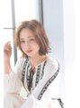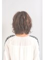 鎖骨下と顎下でつなげたレイヤーボブ。、全体に内・外のミックスパーマをかける。カラーはミントアッシュ。