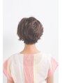 クールに見えがちなショート。チャコールグレージュでかわいらしいカラーを。パーマで柔らかく可愛らしくなるスタイル。