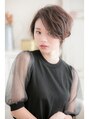 前下がりのバングなしショートにワンカールニュアンスパーマで甘辛に。カラーは肌を美しく見せる赤みのブラウン。