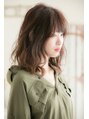 鎖骨ラインで前上がりにカットしたロングヘア。ゆるくだれる感じのミックスパーマがアンニュイな雰囲気に。カラーはカーキでくすませて。