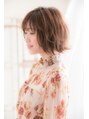 肩上の長さのボブに内・外ミックスのパーマを。頬を包み込むようにかけるので輪郭もカバーしてくれる。カラーはマロンベージュでツヤ感と柔らかさも同時に演出