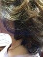 全体にマット系のお色でカラーリング♪左側サイドからネープにかけてブリーチ後ブルーのインナーカラー♪