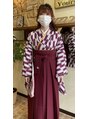 トップだけまとめたハーフアップの予定でしたが、サイドもあげた方がスッキリして良かったのでサイドの髪はおろさずにアップに♪ 矢絣の着物と袴によく合ってます♪