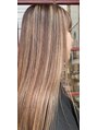 ミルクティーベージュでカラーリングして長さは変えず量感を軽くカット♪ロングヘアにハイライトが映えます♪♪