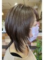 全体をベージュ系でカラーリングしリタッチ部分は少し暗めに♪元々、良い感じのクセ毛なのですが 今回、ウルフカットということでウルフっぽくストレートアイロンでお仕上げ♪