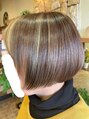 丸いシルエットのショートボブにカット♪ 全体をブラウン系にカラーリングしフェイスラインに太くメッシュ希望でしたので フェイスラインをWブリーチ♪♪