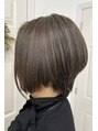 前下がりのグラーデーションボブで耳にかける右サイドを短くカットしアシメに♪♪カラーはアッシュ系でカラーリング♪