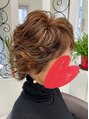 全体にパーマ後、オレンジブラウンでフルカラーリング+ハイライト♪ハンドドライで簡単スタイリング♪♪