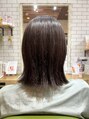 結べる長さも残しつつ、外ハネスタイルにしやすいように量感なども調節してカットしております。カラーはほんの少し赤みを抑えめにくすみベージュに仕上げました。