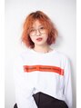 ハイトーンベースのパーマスタイル。トレンド感のあるオレンジベージュでカラーリング。ヴィヴィッドなピンク、パープルも所々に施し、立体感、動きをプラスしています。