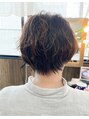 ショートに柔らかい動きのパーマをかけました。トップのふんわり感を簡単に出すことができます。柔らかいウェーブがシンプルな装いやアクセサリーとの相性も良く、スタイリングを楽しんで頂けるかと思います。