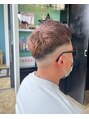 サイドとバックをスッキリさせたメンズヘア。ブリーチによるカラーで透明感を出しながら、黒髪部分を残したのがポイントです。ジェルやグリースをつけてスタイリングも簡単に決まります