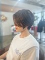 ナチュラルなハイライトを施し、表面を明るめに、インナーを暗めにカラーしたハンサムショート。前髪からの毛流れや、手櫛を通した時の立体感にこだわったショートデザインです。抜け感がありつつかっこいい、スタイリング無しでも素敵なショートヘアです