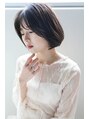 人気のミニボブを前上がりラインでカット。骨格に合わせて顔まわりにレイヤーを入れ、丸すぎないシルエットで雰囲気UP!