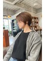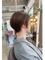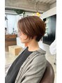 丸みを感じるシルエット。前下がり、長めの前髪でアレンジ次第でカッコ良くも、可愛くも雰囲気を楽しんで頂けるショートヘアです。ナチュラルなハイライトを施すことで立体感を出しながら長くカラーデザインを楽しんで頂けるかと思います。