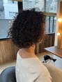 根本からのスパイラルパーマ。ヴォリューム感、シルエットが可愛いパーマデザインです。洗いざらしや結んだり、アレンジとも相性の良いスパイラルパーマです