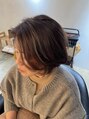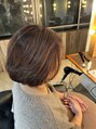 扱いやすいショートボブ。レイヤーをたっぷり入れて毛流れ、立体感を出しやすくしました。ナチュラルなハイライトを施し、白髪を活かしながらのカラーデザイン。立体感を出しやすく、根本の伸びも気になりにくい長持ちスタイルです