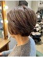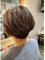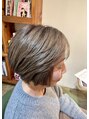 コンパクトなショートボブ。レイヤーをたっぷりと入れて軽やかに。ボブベースのスタイルで扱いやすく!白髪を活かしながら透明感たっぷりなベージュカラーに。根本が伸びてきても気になりにくいカラーデザインです^ ^