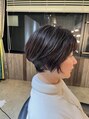 サイド、バックを刈り上げたツーブロックヘア。カッコ可愛いハンサムショートスタイルです。前髪と、トップに長さを残してレイヤーを入れたスタイル。スタイリングしやすく、扱いやすいショートボブ。暗髪との相性も◎