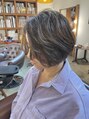 軽やかなレイヤーショート。くせ毛を活かしながら扱いやすくなるように!白髪を活かしながら透明感、艶感が出るようにカラーリング。根本が伸びてきても気になりにくいカット、カラーデザインです^ ^