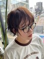 マッシュベースの丸みショート。くせ毛風のニュアンスパーマでカッコ可愛いショートヘアに!スタイリング、扱いが簡単なショートスタイルです。耳かけ等雰囲気チェンジも簡単に楽しめるくせ毛風パーマスタイルです