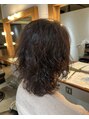 レイヤーをたっぷり入れたウルフベースのミディアムヘア。柔らかなくせ毛を活かしながらパーマをプラスしました。スタイリングしやすく、くせ毛と相性ピッタリなパーマスタイルです