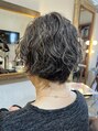 元々お持ちのくせ毛を活かしてパーマ風のレイヤーショートボブに!スタイリング、扱いの簡単なヘアデザインです。白髪を活かした明るめのベージュカラーも素敵です。根本の伸びや褪色も気になりにくい長持ちスタイルです
