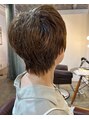 くせ毛を活かしたレイヤーショート。顔周りのマッシュラインが可愛く、長さを残した襟足がかっこいい、ショートデザイン。扱いやすく、スタイリングも簡単に決まるヘアデザインです^ ^