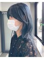 くすみブルー×ダークアッシュ×暗めカラー×ボブルフ