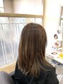 何度か繰り返しているブリーチカラーいつもの寒色系カラーをアレンジ!根元部分の深みのあるカラーから毛先に向かった透明感ある色味に!
