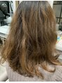 強いくせ毛と量も多く広がりが強いので酸性ストレートで傷ませる事なく自然なストレートを再現した上で、伸びかけた時に広がったり膨らんだりしないように毛量のコントロールをしました!水分とタンパク質をしっかり閉じ込めています!