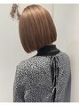 柔らかい高明度のミルクティーベージュカラー。耳にかけたときにぱらっと落ちるおくれ毛がポイント。顎下ボブでラインは切り揃えてタイトなスタイリング。大人っぽさと可愛らしい雰囲気どちらも楽しめるスタイルです!