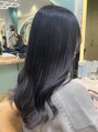 深みブルーのデザインカラー ロングヘアの似合わせカット