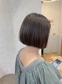 こっくりカラーのすっきりミニボブ。大人っぽいカラーでボブも大人っぽく。髪質に合わせたトリートメントでよりまとまりも出たヘアスタイルに♪