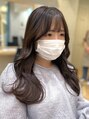 ロングレイヤーのくびれ韓国ヘアイノアカラーのパープルベージュ