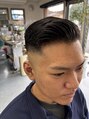 7:3パートラインを剃り込んでくっきり ストレートアイパーで直毛 多め硬めヘアーも楽らく パリッときまるフェードスタイルでバチバチです