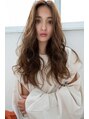揺れる様な動きとフロント部分に入ったレイヤーが混ざって女性らしく優しいウェーブが作れるカット。センターパートの前髪とフロントレイヤーとロングヘアが作る雰囲気は女子の憧れのイメージそのもの♪柔らかいアーモンドベージュでより透明感が出ます♪