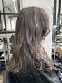 似合わせカットで抜け感たっぷりニュアンスウェーブでアンニュイな雰囲気漂うミディアムスタイルに。カラーは透明感あるブルージュを。ワックスをつけて束感やウェット感を出したヴェールウェーブでスタイリングで遊ぶのもオススメです。