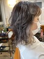 似合わせカットで抜け感たっぷりニュアンスウェーブでアンニュイな雰囲気漂うミディアムスタイルに。カラーは透明感あるブルージュを。ワックスをつけて束感やウェット感を出したヴェールウェーブでスタイリングで遊ぶのもオススメです。