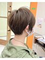 重ための顔回りと、MIXパーマでふわっとしたボリューム感を出したフォルムがおしゃれな、マッシュベースのショートスタイル。くしゃっとスタイリングするのがポイント【大分森町店】