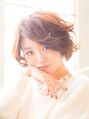 アゴラインのショートボブベースにトップからレイヤーを入れて全体につなげます。 スライドカットで毛量を調整し、長短をつけて立体感と抜け感をプラス。 カラーはクリームベージュ