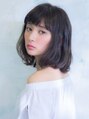 毛先がワンカールのミディアムスタイルです!レイヤーを入れているのでワンカールでも動きがでてふんわりします☆斜め前髪で小顔見せ♪