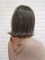 少し長めの切りっぱなしロブスタイルです!仕上げはアイロンで外ハネにするだけ!簡単スタイリング☆カラーもアッシュで透明感アップ♪